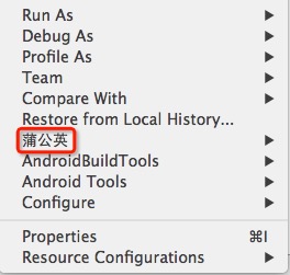 选中工作区的android工程,右键菜单出现“蒲公英”菜单说明插件安装成功。